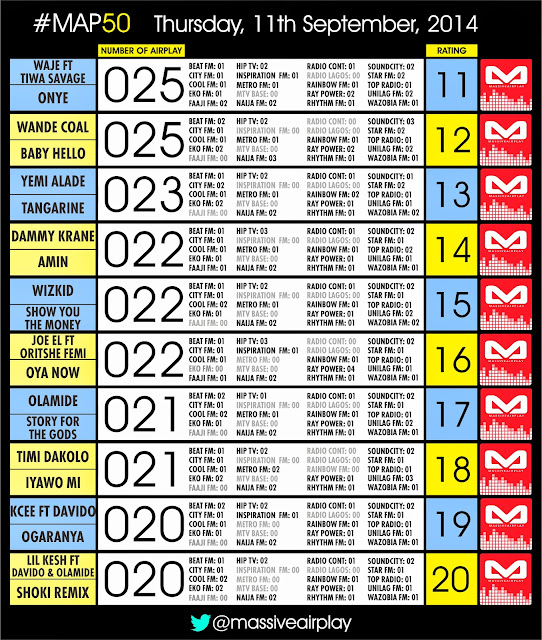 #11 - 20 September 11: Amin by Dammy Krane gaining airplay to move up to No.14 on #MAP50 Daily